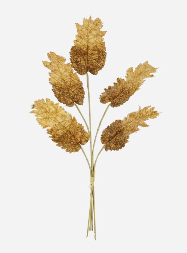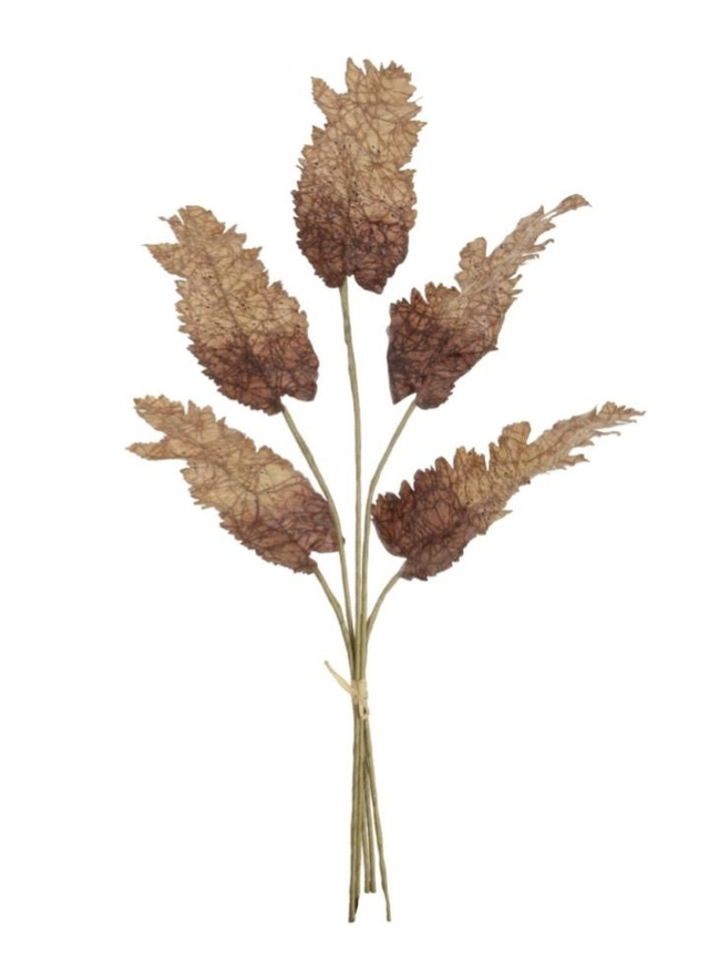 Dried Touch Artificial Fall Leaf Bunch Bring natural beauty to your arrangements with this lifelike dried touch Fall Leaf Bunch . Its soft, realistic leaves mimic the look and feel of dried branches —perfect for home décor, weddings, and seasonal designs.Realistic “dried look” leaves and textureLong stem for easy arrangingIdeal for bouquets, centerpieces, or standalone displays