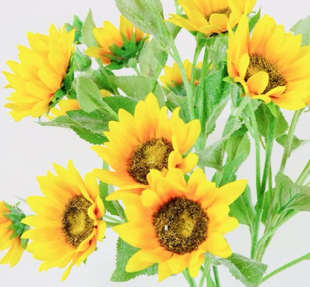 Brighten any space with the cheerful charm of this realistic artificial sunflower spray. Perfect for summer arrangements, farmhouse décor, and year-round displays.Lifelike petals and vibrant colorSturdy, wired stem for easy arrangingIdeal for bouquets, centerpieces, or craft projects