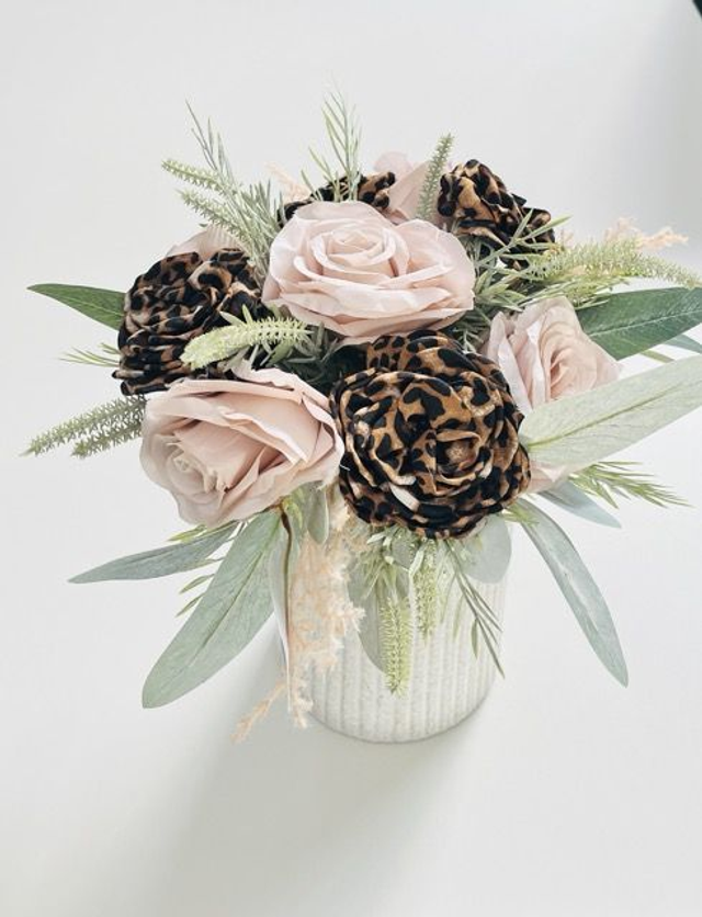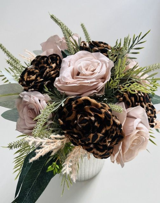 Unleash your bold side with our Leopard Luxe Rose Bouquet, a stunning fusion of wild charm and timeless elegance. This truly unique arrangement features striking leopard print roses that serve as fierce focal points, beautifully balanced by soft, nude-toned roses for a touch of refined romance