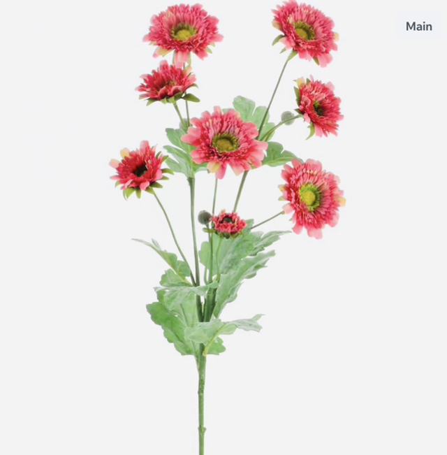 Artificial Wild Gerbera SprayBring a natural, rustic charm to your arrangements with this lifelike wild gerbera daisy spray. Perfect for adding color and texture to bouquets and displays.Realistic wild daisy blooms with vibrant detailFlexible, wired stem for easy arrangingIdeal for spring and summer décor