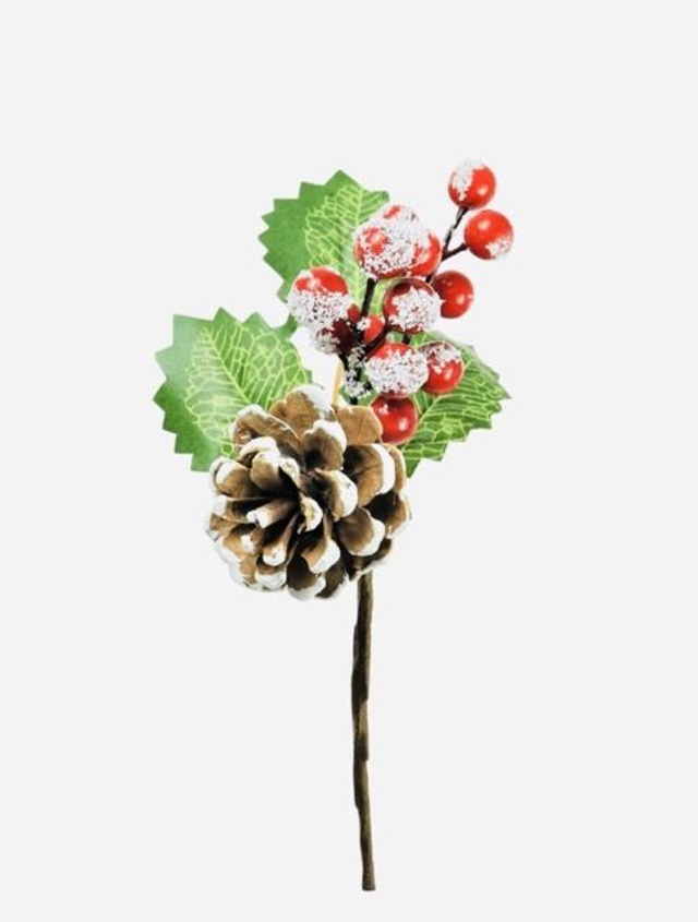 Yuletide Cone PickAdd classic holiday charm to your décor with this festive yuletide cone pick. Perfect for wreaths, garlands, and Christmas arrangements.Features pinecones and seasonal accentsWired stem for easy arrangingIdeal for holiday crafting and displays